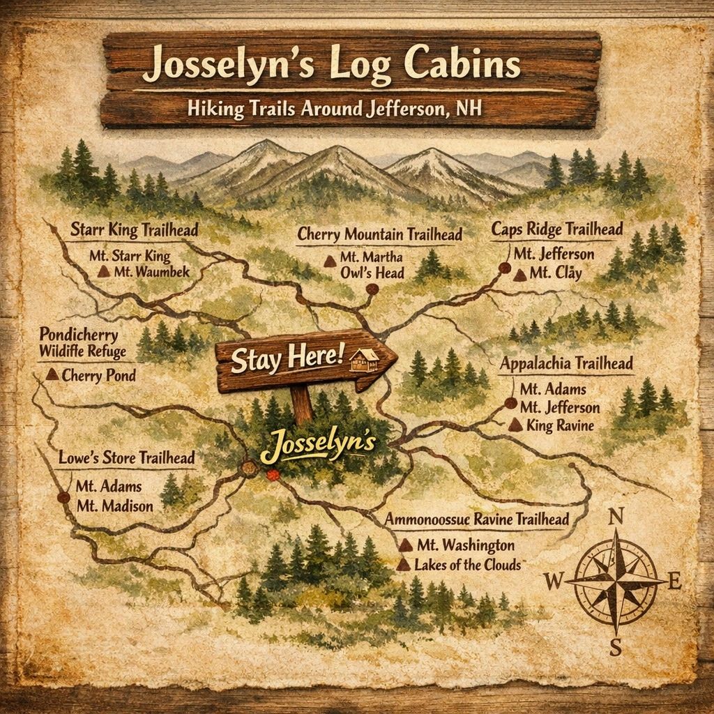 Located in scenic Jefferson, New Hampshire, the Getaway cabins are a vacation retreat like no other. This property was developed right off Route 2 near Santa's Village to provide a year-round rustic North Country experience to visitors who want to enjoy the four seasons without roughing it.