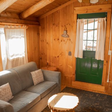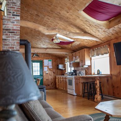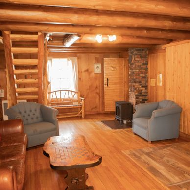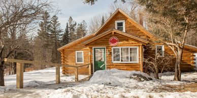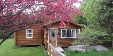 This cabin, with its' large back yard is in our most private location, set in an old maple grove with pointed firs around the property.
