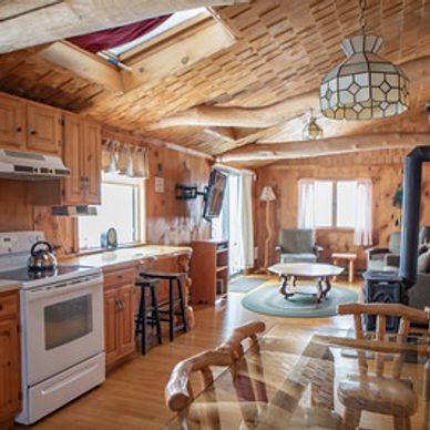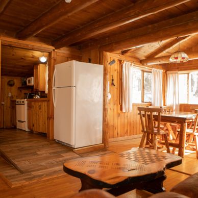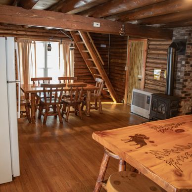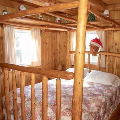 "We stayed in the Workshop cabin and it was great. It has two rooms on ground level that were perfect for one couple each. There is also the loft upstairs with two double/full beds and one single that were great for the kids. One of the larger beds upstairs is in a room with a door that can be closed if more privacy is needed. The place was very clean and had everything we needed. It is a very short distance from Santa's Village (almost walking distance)." Eric via Google Reviews